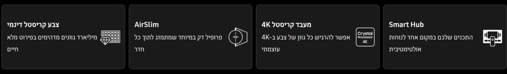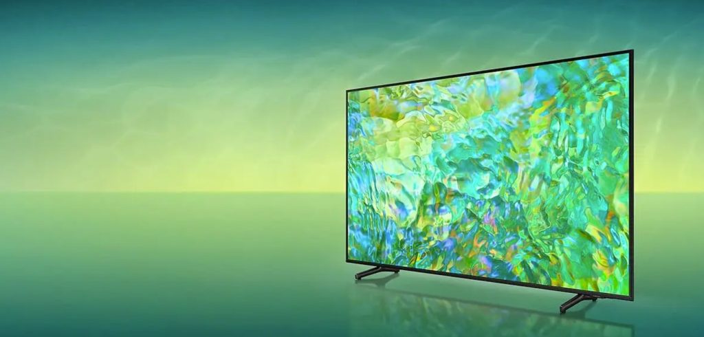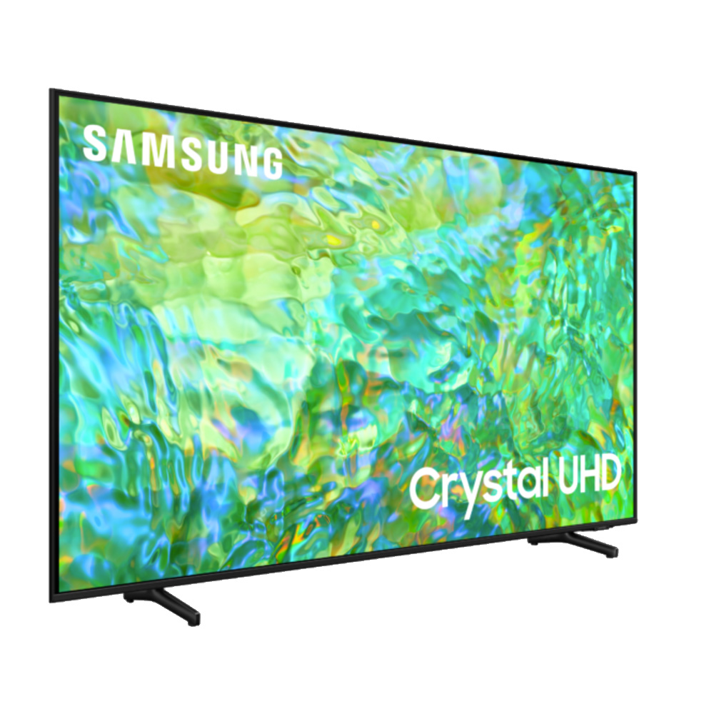 מסך סמסונג יוקרתי מסדרת Crystal UHD מדגם CU8100 בעיצוב דק ויוקרתי AirSlim בעובי 2.5 ס”מ, ללא מסגרת ובגימור שחור