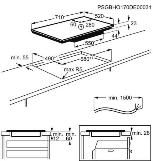 (בנוסף דרוש מרווח מינימלי של 2 ס”מ לאוורור מתחת לכיריים)