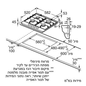 התקנת כיריים ותנורים משולבים תתבצע אך ורק ע”י טכנאי התקנה מורשה.