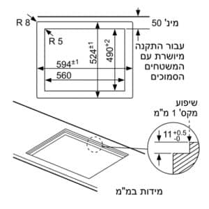 התקנת כיריים ותנורים משולבים תתבצע אך ורק ע”י טכנאי התקנה מורשה.