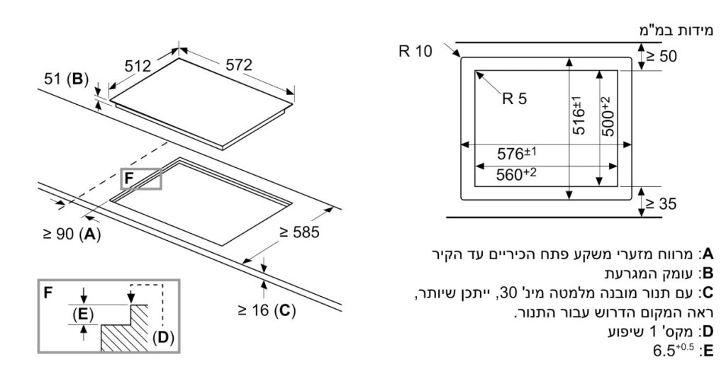 התקנת כיריים ותנורים משולבים תתבצע אך ורק ע”י טכנאי התקנה מורשה.