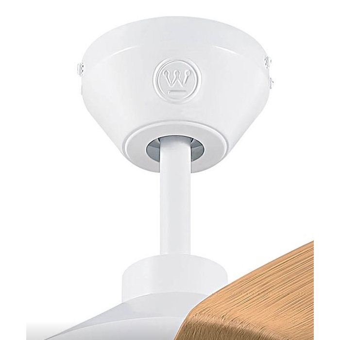 מאוורר מסדרת Valeria בגודל 42″ עם 3 כנפיים העשויות מחומר מיוחד ABS, מנוע בצבע לבן מט וכנפיים בצבע דמוי עץ אלון.