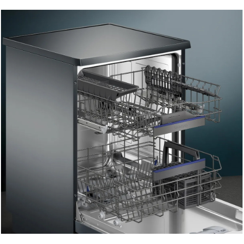 מדיח כלים רחב מבית Siemens בגוון דמוי נירוסטה מושחרת משולב טכנולוגיית iQdrive – מנוע ללא פחמים, שליטה מאפליקציה ו-6 תכניות הדחה