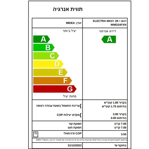 מזגן עילי MAX PLUS 29 אלקטרה ELECTRA