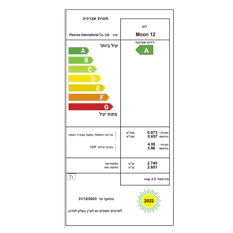 מזגן עילי HISENSE הייסנס Dark Moon 12