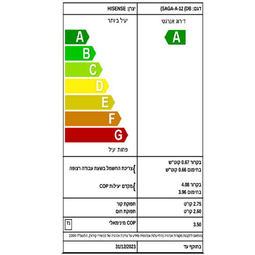 מזגן עילי TORNADO טורנדו SAGA-A 12 (DB)