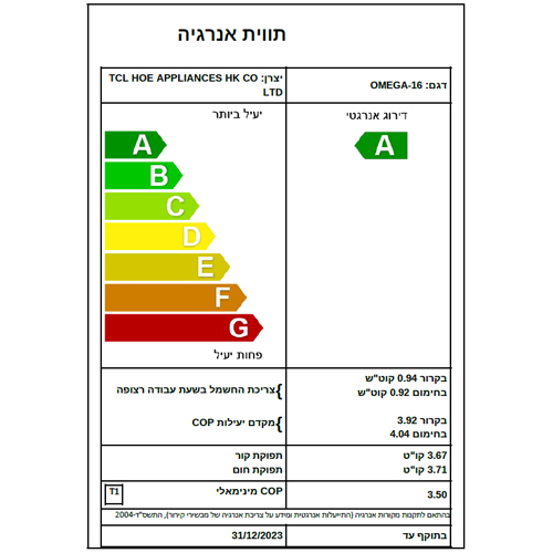 קירור- 3.99 C.O.P