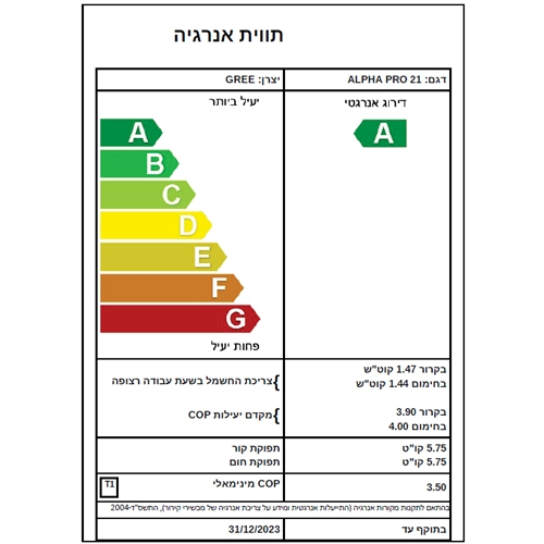 מזגן עילי TADIRAN תדיראן ALPHA PRO 21