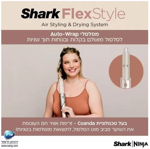 כריש בנוחות – שארק פלקס סטייל בעל הטכנולוגיה הייחודית המאפשרת מעבר פשוט ממייבש שיער למעצב שיער עם כל האביזרים שתצטרכי לכל סגנונות העיצוב – מתאים לכל סוגי השיער, מבית שארק | נינג’ה.