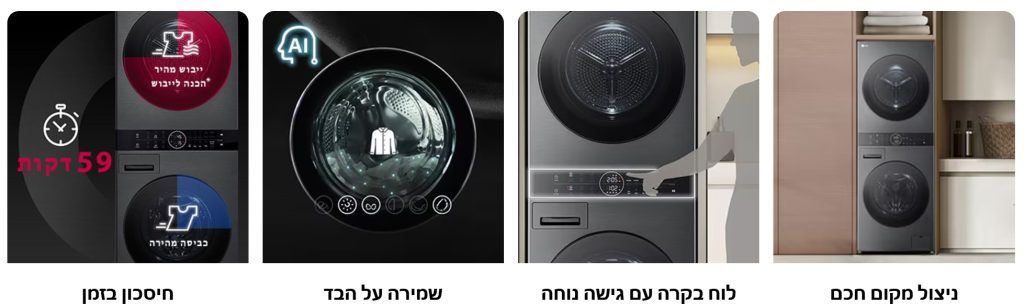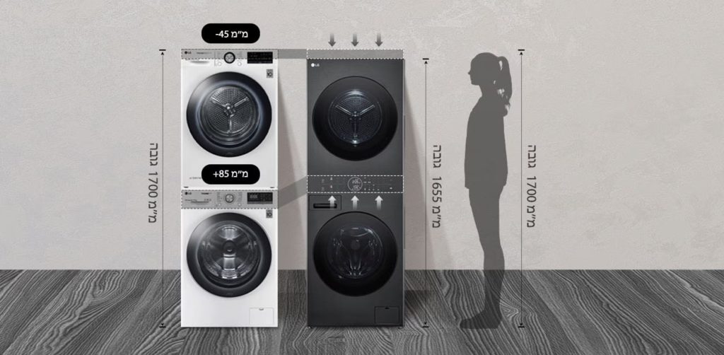 מכונת כביסה משולבת מייבש 10/12 ק”ג LG דגם WT40