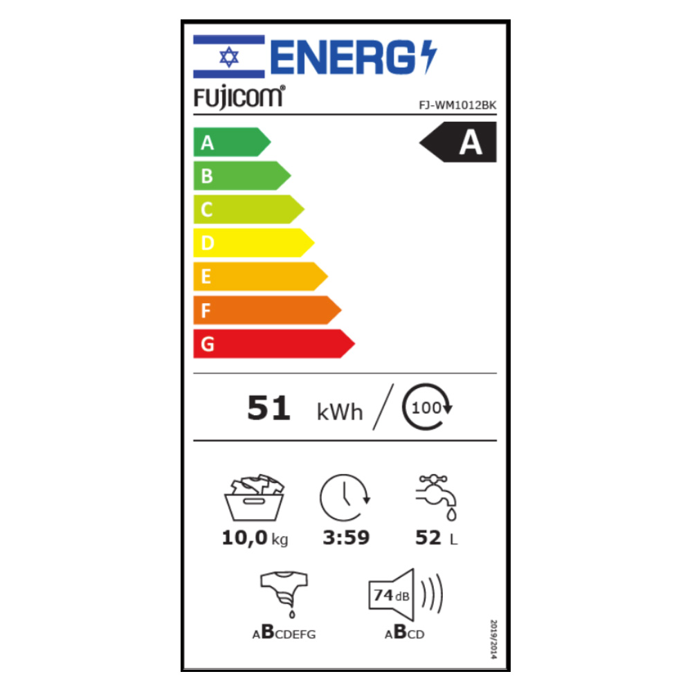 מכונת כביסה 10 ק”ג 1200 סל”ד נירוסטה מושחרת דגם FJ-WM1012BK