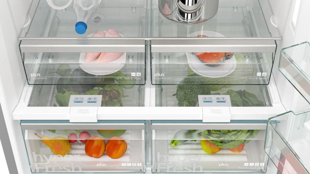 2 תאי HyperFresh 0° Box עם בקרת טמפרטורה, על מגש נשלף להארכת משך הטריות של דגים ובשר