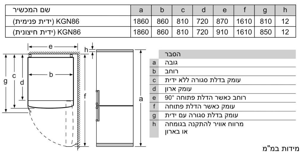 » פירוק דלתות מקרר דלת ליד דלת–180 ₪