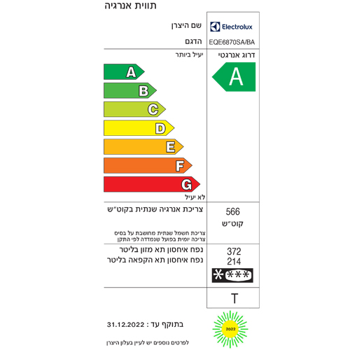 מקרר יינות 7C, מקרר 3C, קירור משקאות 0C, בשר ודגים טריים 2C-, מקפיא עד 23C-.