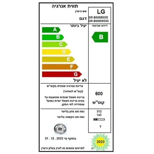 מקרר מקפיא תחתון 4 דלתות LG אל ג'י GRB608WDID