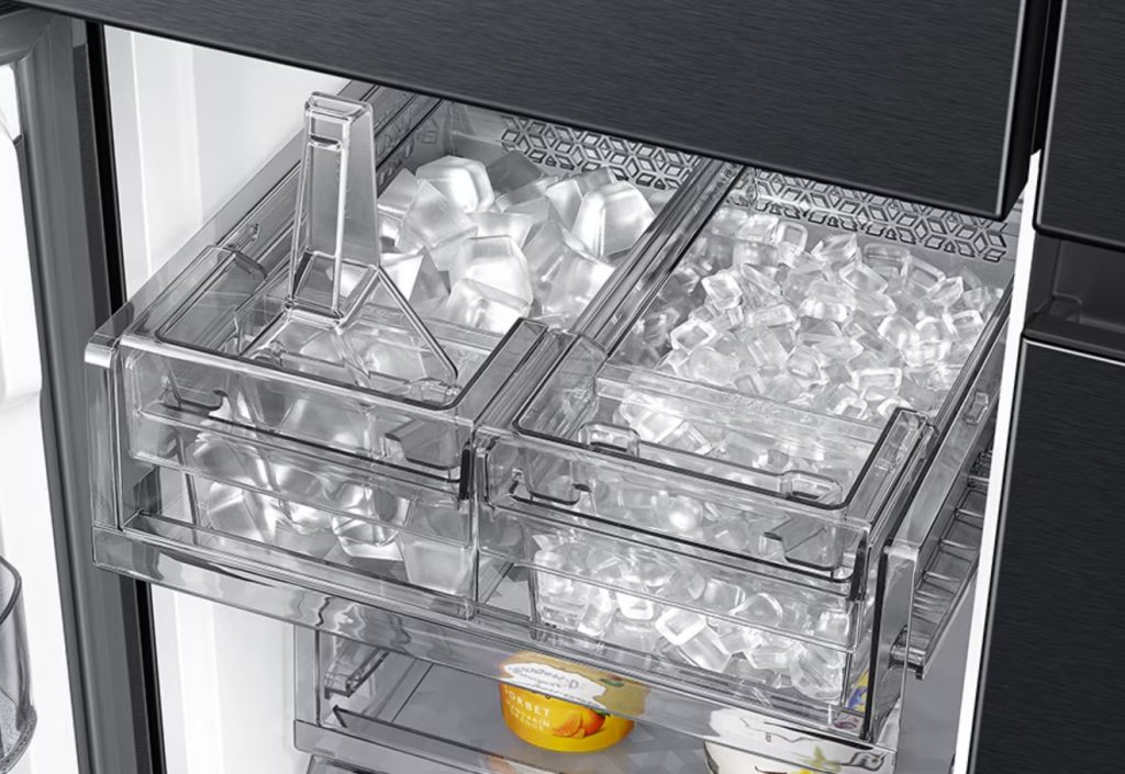 במקפיא השמאלי כוללת שני יצרני קרח נפרדים לקוביות וכדורי ויסקי