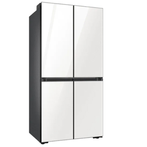 מקרר 4 דלתות עם קיוסק מלא, בנפח כללי 938 ליטר מסדרת BESPOKE היוקרתית, בעלת חזית זכוכית מחוסמת הניתנת להחלפה
