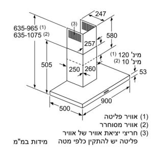גובה – 635-1075 רוחב – 900 עומק – 500 למידות מדויקות ראה שרטוטי הבניה