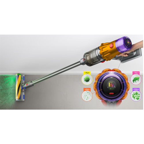 הממוצע נבדק על פני חמש משימות ניקוי באמצעות ™Dyson V12 לעומת ™Dyson V11. בדיקות מעבדת ארגונומיה בארה”ב מרץ 2022. ™Dyson V12 מאושר ע”י United States Ergonomics.