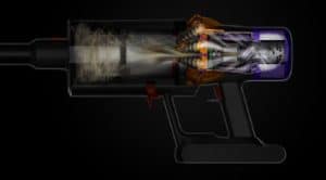 לשואב האבק של Dyson מערכת סינון אטומה לחלוטין, אשר לוכדת ביעילות 99.99% מחלקיקי האבק המיקרוסקופיים ומהאלרגנים שגודלם עד 0.3 מיקרון ופולטת אוויר נקי יותר