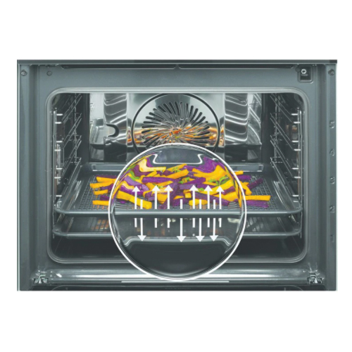 האוויר החם שנוצר בתוך התנור במהלך הבישול מסוחרר בעזרת מאוורר, כך שכל הכלים שלכם מקבלים את אותה כמות חום.