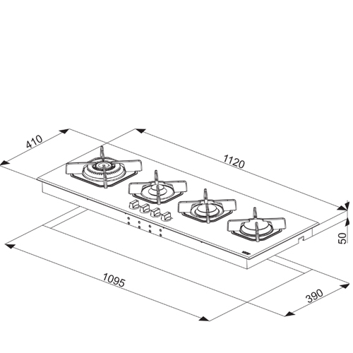 כיריים LOFRA בנוי זכוכית שחורה 4 להבות גז 112cm
