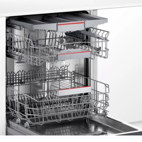 סלסלה עליונה Rackmatic מתכווננת ל-3 גבהים, גם כשהיא עמוסה בכלים