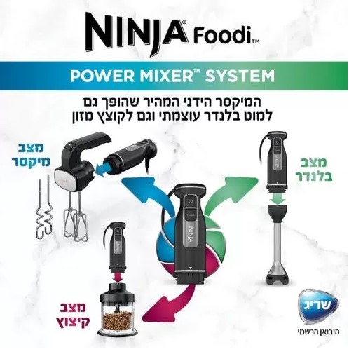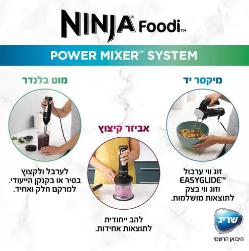 בעל להבי נינג’ה חדים ומדויקים להכנת מחיות, מרקים חלקים, מטבלים, משקאות קפואים ועוד. לערבל ולקצוץ ישר בתוך הסיר או בקנקן הערבול הייעודי.