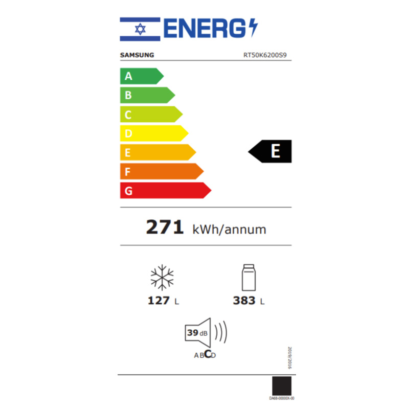 צריכת אנרגיה שנתית תקן חדש: 271 קו”ט.