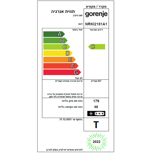 מקרר מקפיא תחתון GORENJE גורניה NRKI2181A1