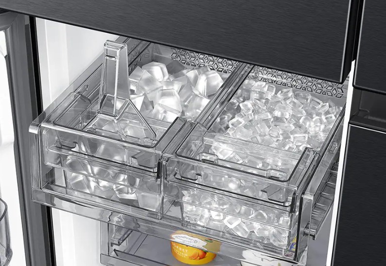 במקפיא השמאלי כוללת שני יצרני קרח נפרדים לקוביות וכדורי ויסקי