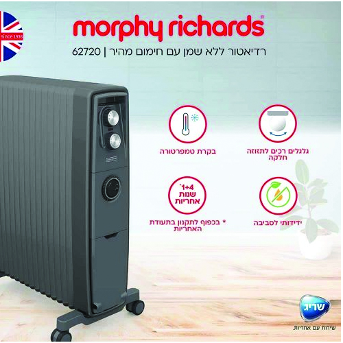 בעל מפסק בחירת טמפרטורה, עם גלגלים לניידות נוחה בין חדרים, בטיחותי ביותר וקל להפעלה!