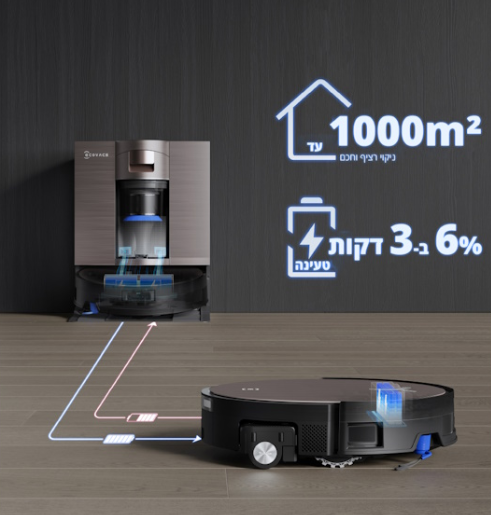 במהירות במהלך הפסקות קצרות בניקוי, ולהחזיר 6% מהסוללה בתוך 3 דקות בלבד