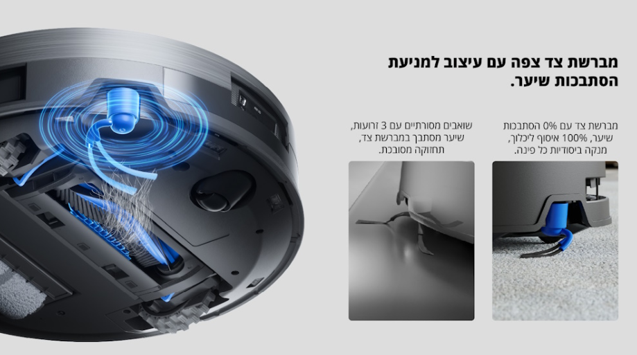 מערכת AIVI 3D 3.0: לא רק עוקפת מכשולים אלא מנקה סביבם בצורה חכמה ויסודית; מתמודדת ומסתדרת גם U עם רגלי רהיטים בצורת עם כבלים וחפצים מורכבים