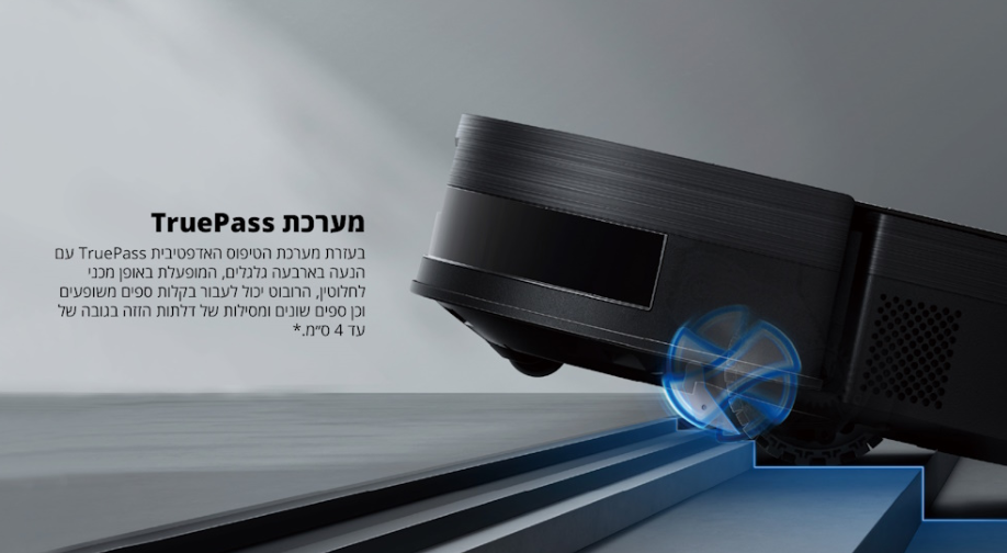 השואב מסוגל לעבור ספים משופעים ומסילות דלתות הזזה עד גובה 4 ס”מ