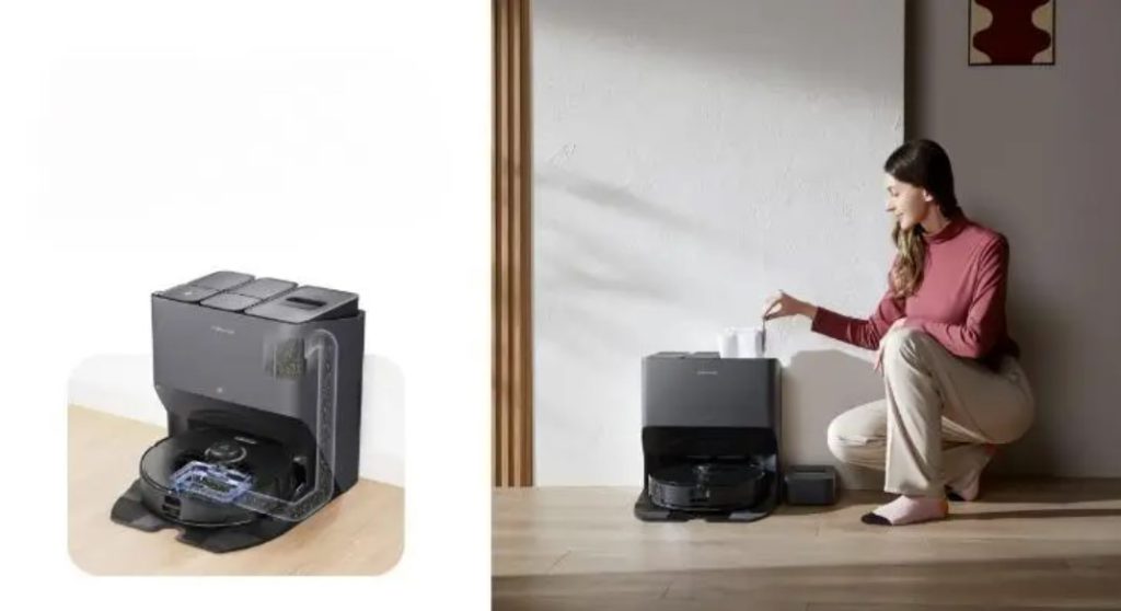 ממלא מחדש את מיכל המים של הרובוט במהלך ניקוי.