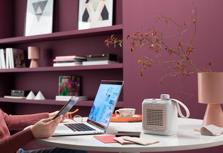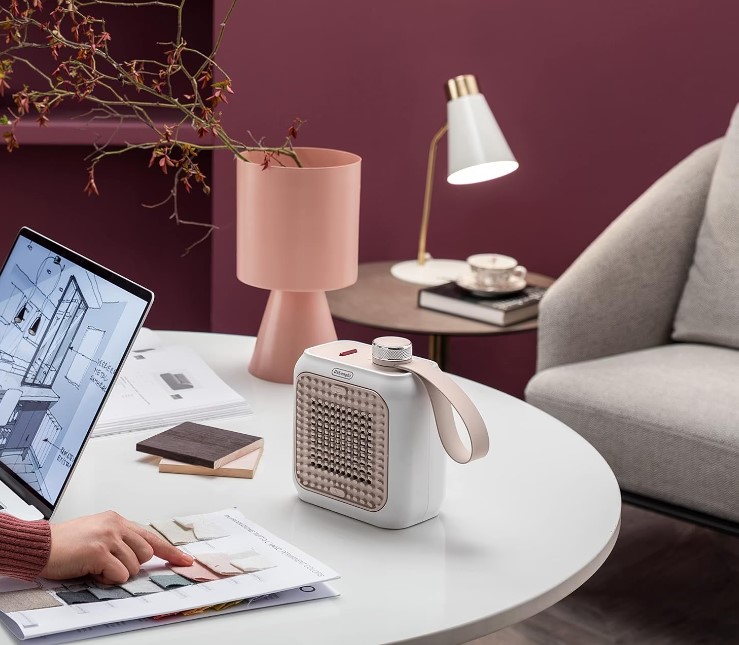 מפזר חום מיני אישי לשולחן העבודה בעיצוב קומפקטי ואופנתי.