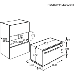 מידות הגומחה עXרXג במ”מ 475X860X550